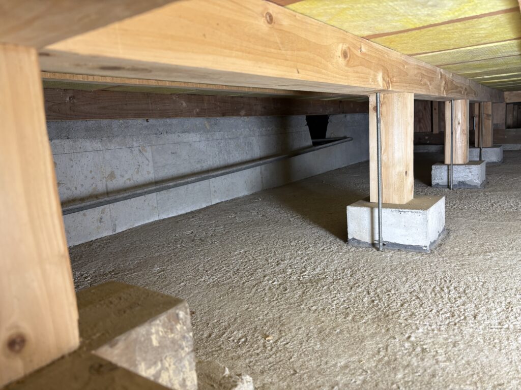 作業内容は、大引に鋼製束を追加して床の強度を高める方法です。床下は湿気もなく乾燥しており、少し涼しくなったこの時期に作業を行ったため、1時間半ほどでスムーズに完了しました。