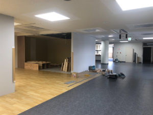今日は台風が近づいてきているという事もあり天気もあまり良くないです。 以前のブログで書いた「弥富市歴史民俗資料館」の進行具合ですが、床のシートも張り終わりました。 いよいよ完成に近づいてきましたね。やっぱり内装工事は化粧の壁材・床材が仕上がるとググッと出来た感じがします。 私は建設という「ものづくり」をしていて 「出来てきた」と感じる時が一番好きです。 今回は外壁が無いけれど、内装の仕上げが出来てきたのでもう完成間近ですね。 あとは「昔の暮らしブース」のジオラマが完成したら本・・・