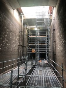 最近は曇の日が多くて作業する方にも比較的涼しい環境ですね。 とは言え「熱中症」にはまだまだ注意が必要です。 さて、以前お話した「弥富ポンプ場 自家発棟」のお話。 先日、コンクリートを型枠内に流し込みました。 壁の型枠は解体できるコンクリート強度を確認した後に解体する事ができます。コンクリートを打設する際にサンプルを採取してそれで強度試験をします。 強度試験での結果が良好だったのでいよいよ壁の型枠解体です。 私も現場で作業している時はこの「型枠の解体」の際はドキドキです。空洞が・・・